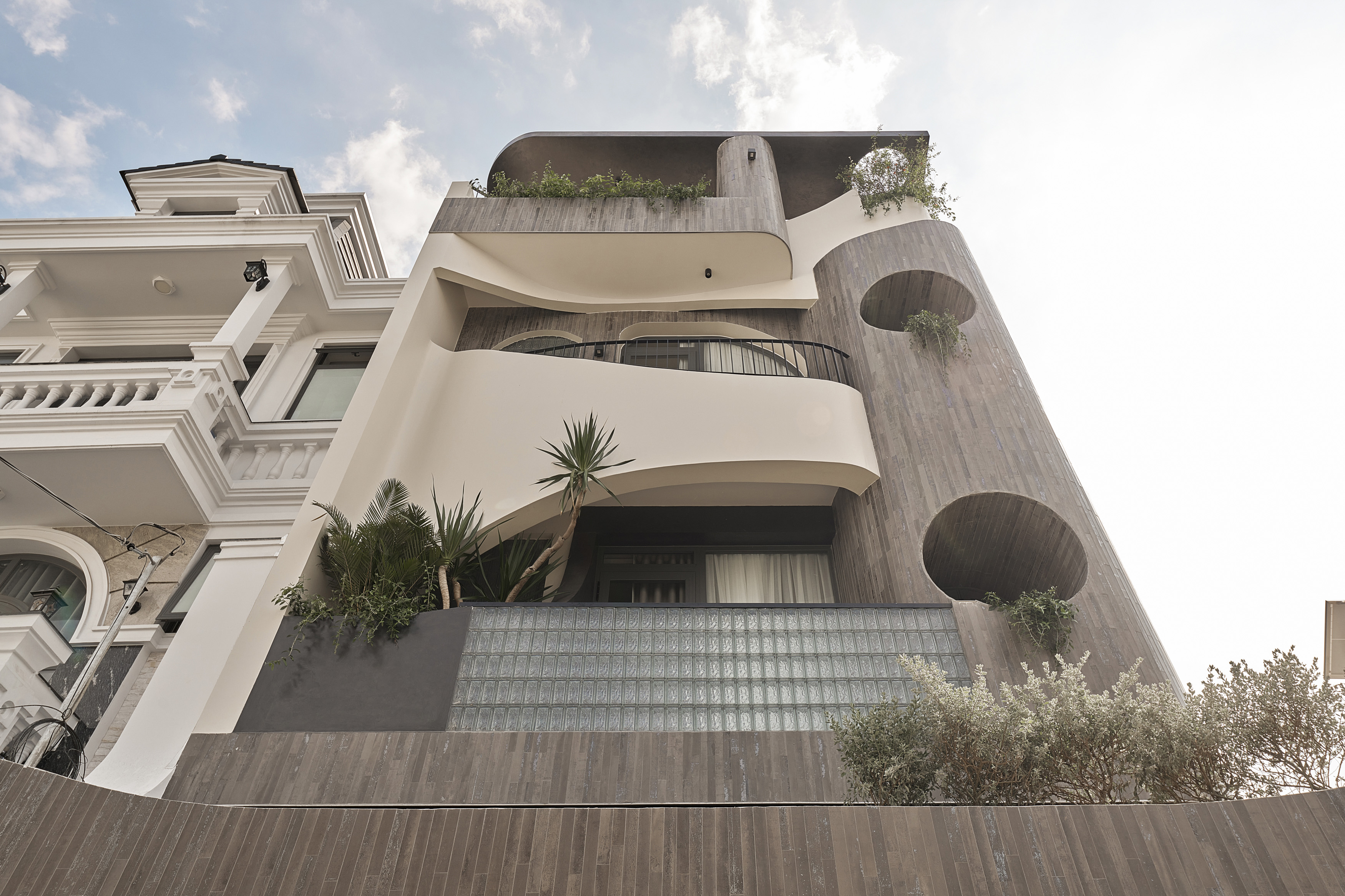 The most outstanding feature of the house is probably its exterior, both sturdy and surprisingly light thanks to the combination of stone and brick along deliberately curved lines. In addition, the addition of green plant covering the entire facade also makes the whole look somewhat harmonious and fresh. Going into the interior, the feeling is even more intense because the black - cream tone is used to highlight the minimalist style, but not boring at all. The intended points are also somewhat coordinated, supporting the living process of the whole family, contributing to creating the most comfortable, neat and comfortable living space. We have many ideas, but the land belongs to the state's planning framework and the guiding principle is still a design that brings compatibility, suitable not only for parents but also suitable for other members - children - characters who have no voice in the design process, but are the members who spend most of their lives here.